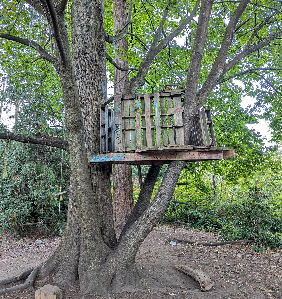 The UNA does not currently have any plans to build an official treehouse in place of the old one. A couple years, ago, the UNA looked at replacing it with a different kind of play structure, except the site sits above a critical tree root zone. That means anything official was unlikely to get approved by UBC’s Campus and Community Planning team.
